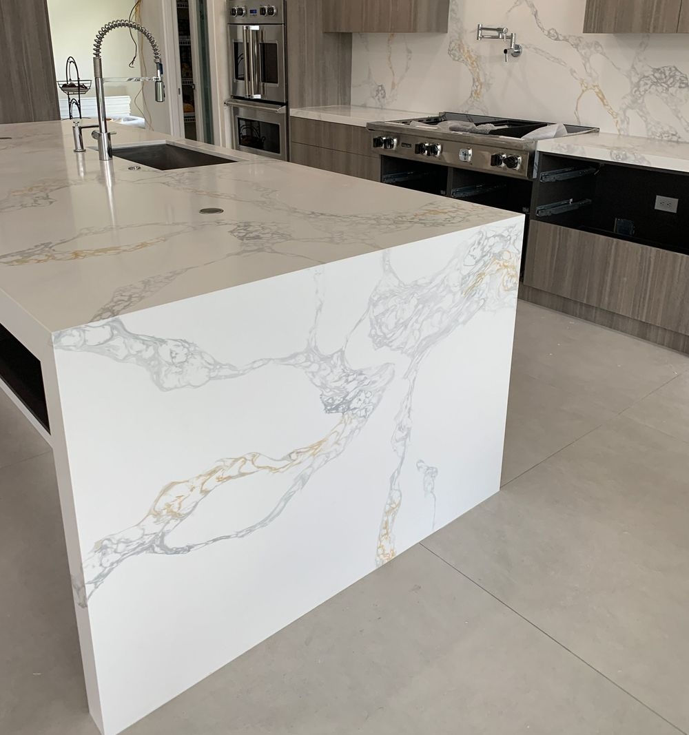 This is a great reception pods with a combination of Dekton with Quartz. Manufacture with our CNC VIKING II, and installed by our professionals.